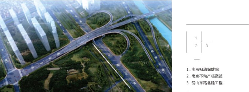 1、南京妇幼保健院(丁家庄院区) 2、南京不动产档案馆 3、岱山东路北延工程